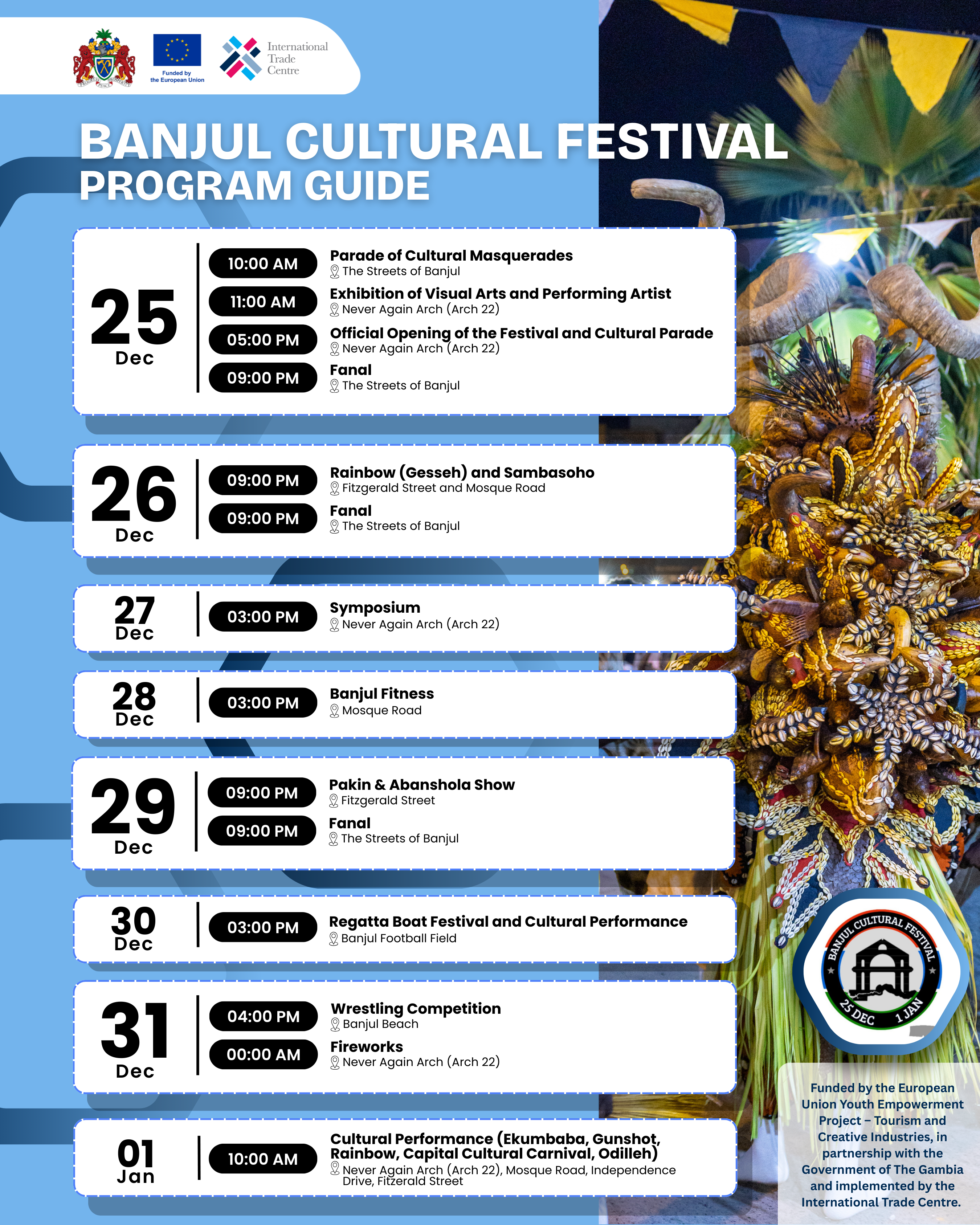 From 25 December to 1 January, Banjul celebrates the Banjul Cultural Festival.